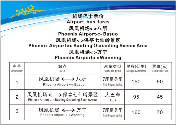 凤凰机场站→槟榔谷景区→呀诺达景区→大本驿站→县城补票点→保亭七仙岭景区