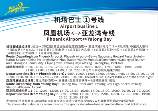 机场巴士①号线: 三亚凤凰机场 ←→ 亚龙湾