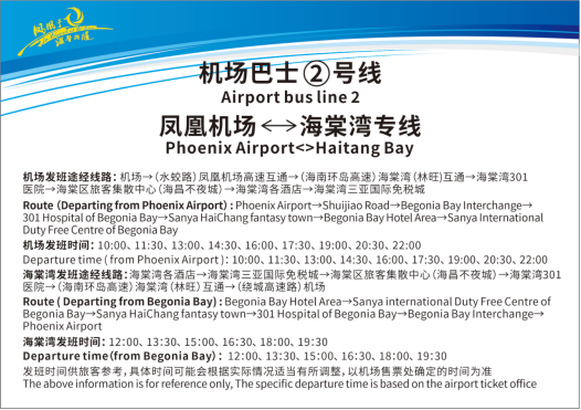 机场巴士②号线: 三亚凤凰机场 ←→ 海棠湾三亚国际免税城
