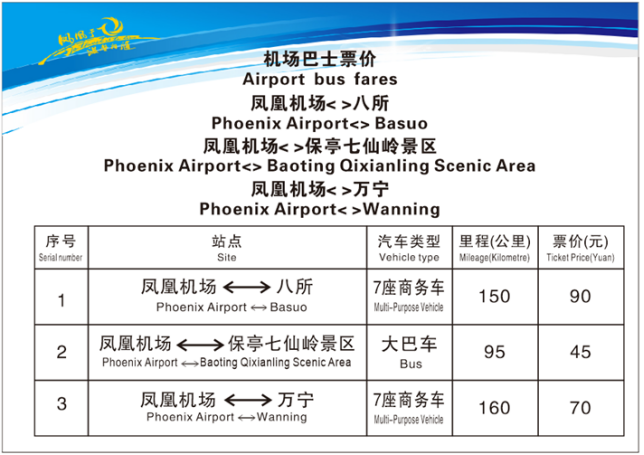 三亚凤凰机场 ←→ 八所;三亚凤凰机场 ←→ 万宁